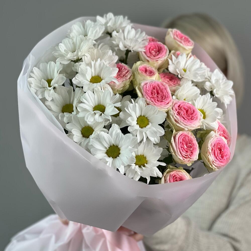 ️Нежный Букет хризантемы ромашки и кустовые пионовидные розы в Боровичах